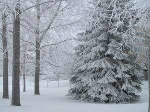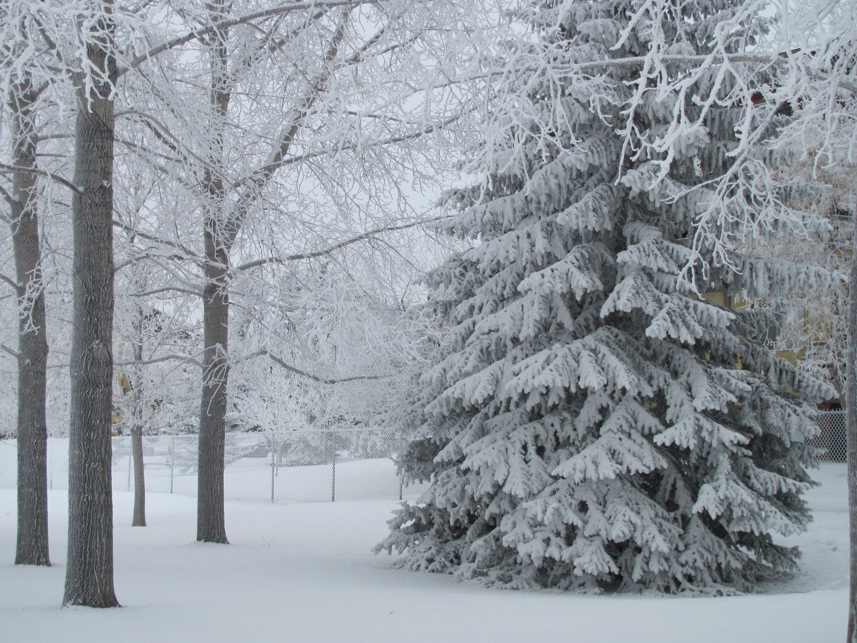 The skiff of white stuff that greeted me when I stepped outside this morning can mean only one thing: it’s time to bring out the sweaters and warm woollen blankets that have been tucked away for months, and anticipate long evenings cuddled up with a good book in front of the fireplace. The first frosts have occurred, to be followed by the icy blasts of winter cold and snow that are so familiar to those of us residing on the Prairies.Have you ever thought about what plants go through during the freezing process? It’s not pretty! A light frost, the kind that leaves a thin film of ice on plant surfaces and burns off by mid-morning, usually results in foliage damage. Ice crystals build within the leaves, expanding and destroying the cells, which results in the tissue turning black or becoming “slimy,” then collapsing and dropping off. Any tender herbaceous plants (annuals, non-hardy perennials) that suffer widespread foliage damage die off quickly. A heavier frost that happens rapidly, over the span of mere hours, will be more catastrophic to plants: foliage will be destroyed, and the ice crystals will attack the twigs, stems and branches of both woody and herbaceous plants. Plants that are not sufficiently hardy are killed; this is why it is very important to plant according to the hardiness zones in your region. Tough perennials and roses may die back completely to the ground as their roots go dormant. Trees will undergo dormancy as well, and they will usually not suffer too much from the death of a few branches and twigs.