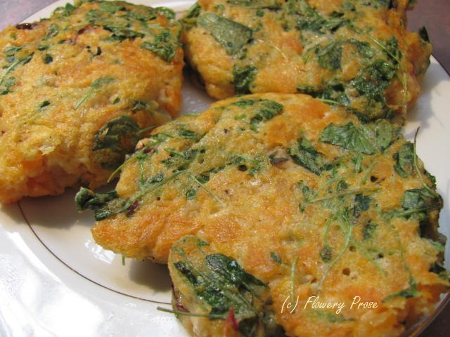 Combine all ingredients in a medium mixing bowl.  Form the mixture into small flat patties and fry in butter in a hot pan until lightly browned.  You could serve this with a dollop of sour cream or Greek yogourt if you want, but they’re great just on their own.  Yield:  4 patties (2 servings).   And…if you’re not growing wintercress, you could easily substitute spinach or kale instead!