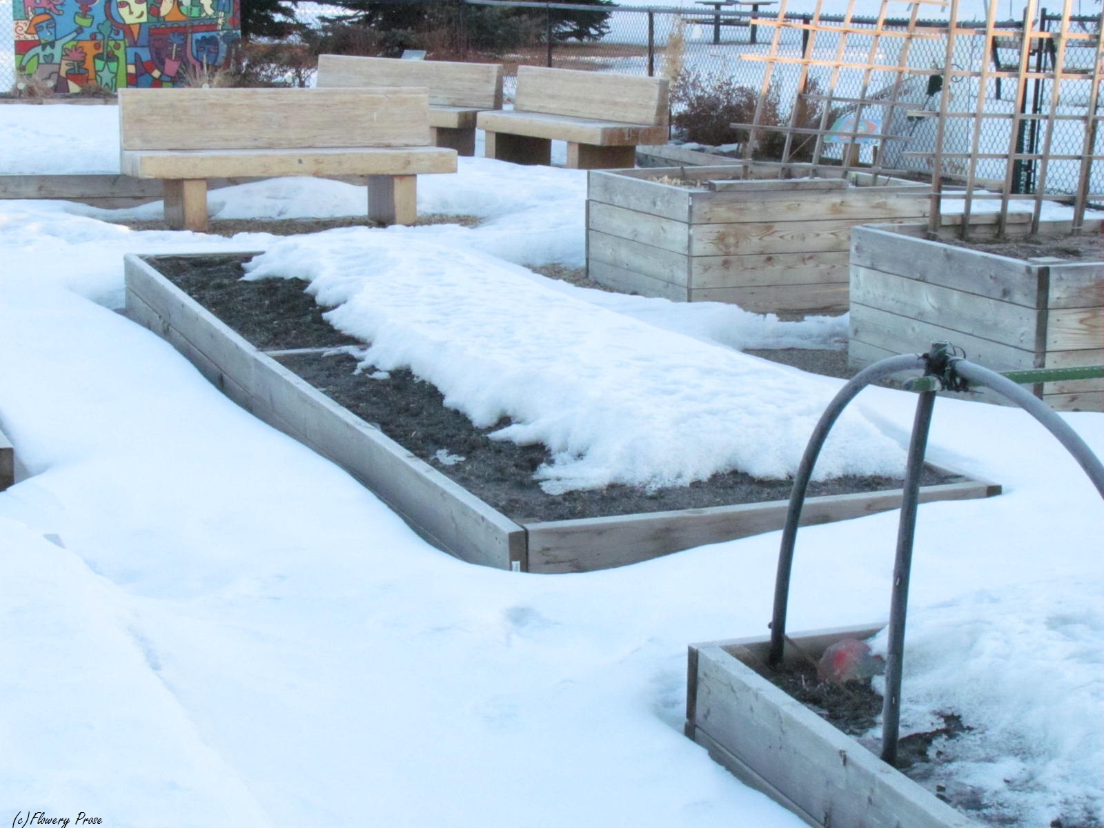 Well, I swung by the ol’ plot at the community garden this morning, and hung over the fence for a moment. (The gate is frozen solid into the ground, or I would have let myself in).