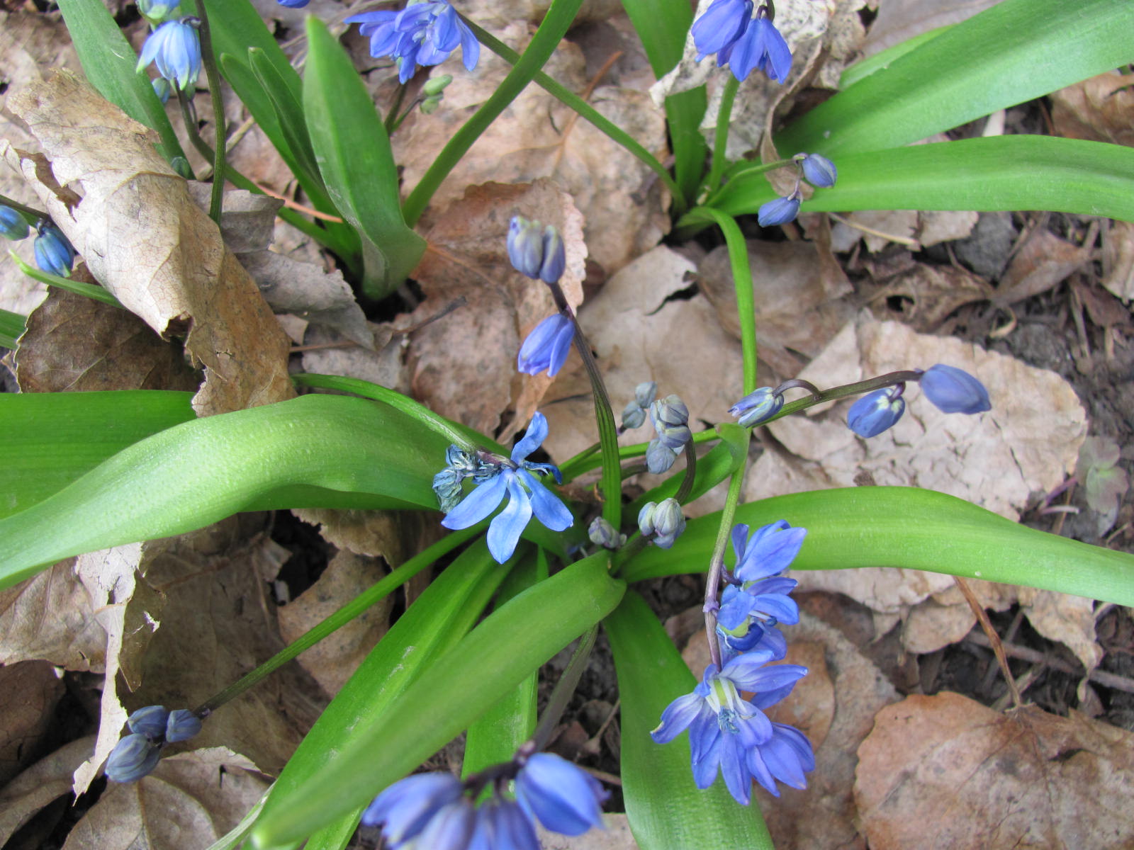 Scillaย siberica festooned with highly decorative deadย leaf mulch.ย (Someone ought to have taken an “After” shot, methinks).ย  ๐Ÿ˜‰