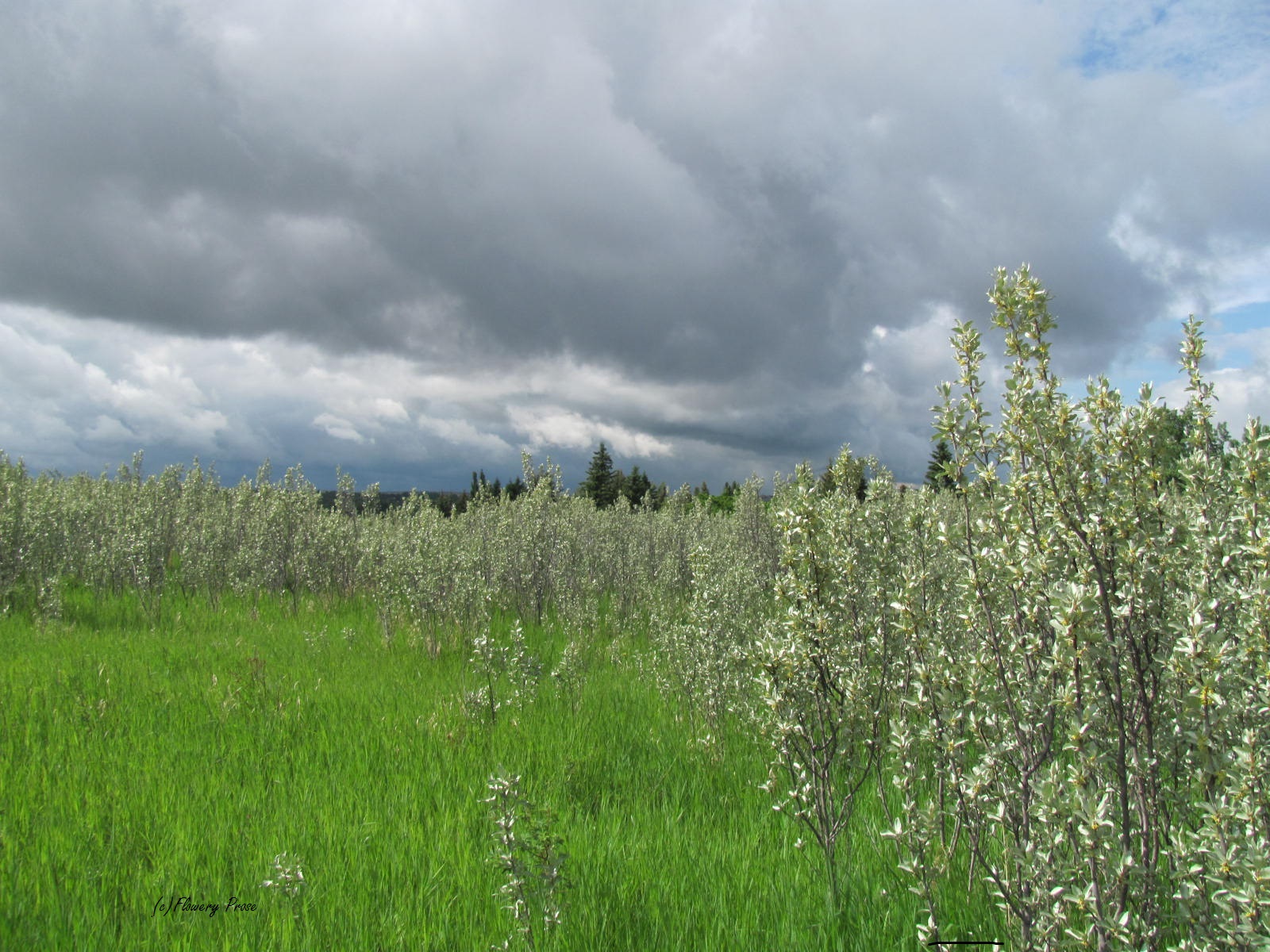 Although I wouldn’t necessarily recommend wolf willow as a worthy addition to most* gardens, you can’t deny its good looks. Especially against a stormy sky: