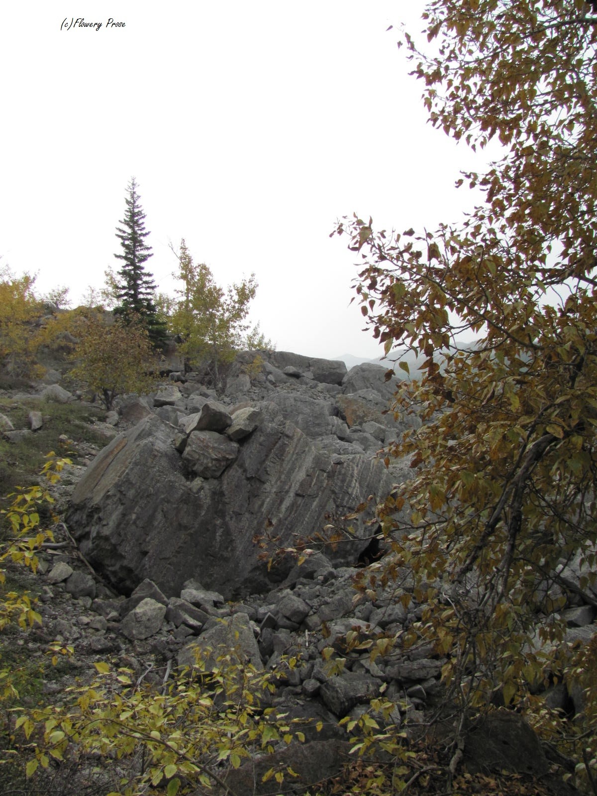 This is fascinating and terrifying at the same time! The pictures you took are terrific–the bright trees against the gray, dead-looking rocks–so striking!