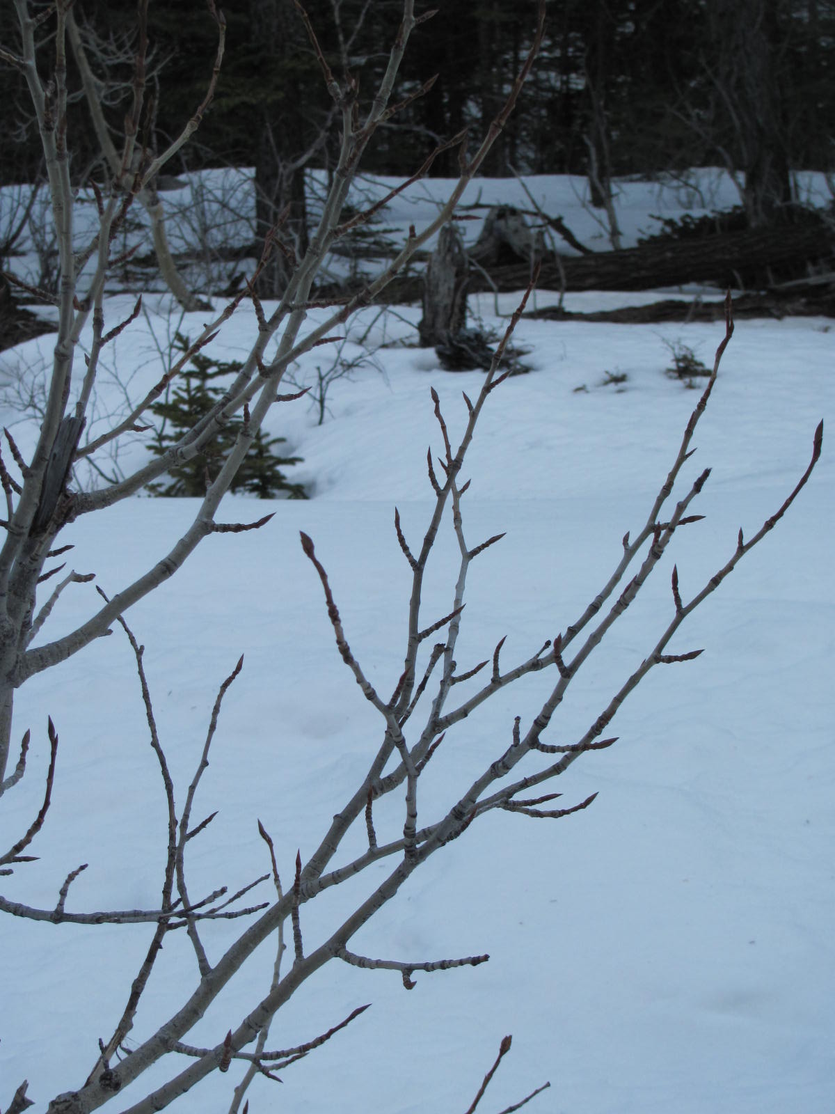 Trees budding in the snow.