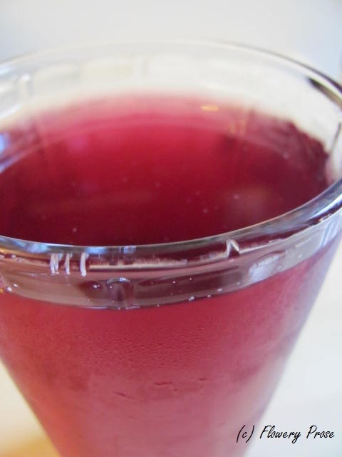 One of theย workers atย Little Purple Apple (Prairie Berry) was telling me about some saskatoon syrup they had preserved for sale to the customers; she said if you werenโt inclined to put it on your pancakes, you could add a small amount to ice water for a refreshing summeryย drink.ย Of course, that got the olโ gears grinding, and I thought perhaps I could create my own version of the recipe at home.ย ย Here is my take: