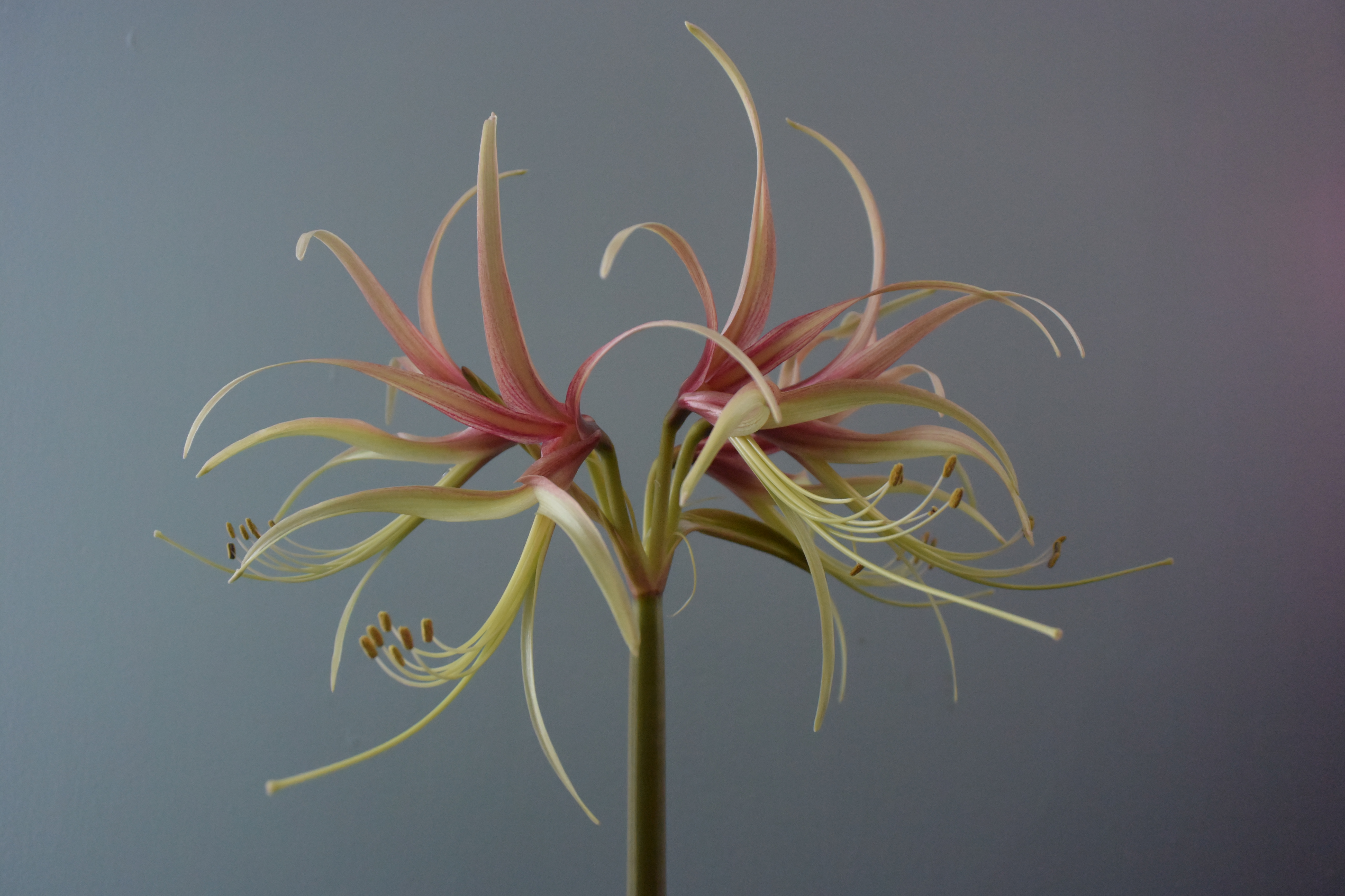 My Schlumbergera decided that it didn’t want to make an appearance on social media this year – it’s sulking because I moved it from its preferred location earlier in the year. (I had to – our cat’s midnight snacking sessions were taking a toll!). While I wait for it to recover fully and decide to put on a show, I can content myself with my cybister amaryllis, which I saved over from last year by pretty much doing nothing at all. (I cut off the flower stalk when it was finished blooming, and allowed the plant to grow out its leaves. I kept watering only when necessary and left it in a sunny location until the leaves died back in the early summer, then I let the bulb sit in the soil for several months. During that time, I didn’t water it, and didn’t move it from its location. I revived the bulb in late October by resuming watering. I started fertilizing a bit once I saw some activity).