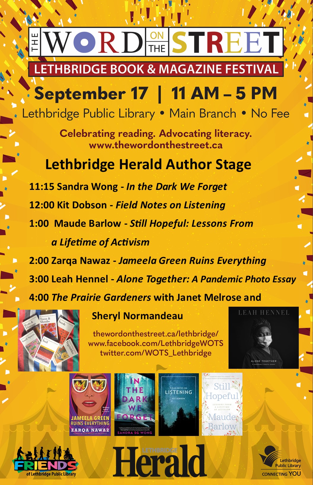 My co-author Janet and I are thrilled to announce that we are presenting at the Lethbridge Word on the Street Festival on Saturday, September 17! We’ll be on the Lethbridge Herald Author Stage in the main branch of the library at 4 pm, chatting about The Guides for the Prairie Gardener series and answering questions from the audience. If you’re in the city that day, we would love to see you! We’re also doing a book signing in the hour before our presentation, and you can purchase our books onsite through the University of Lethbridge Bookstore.