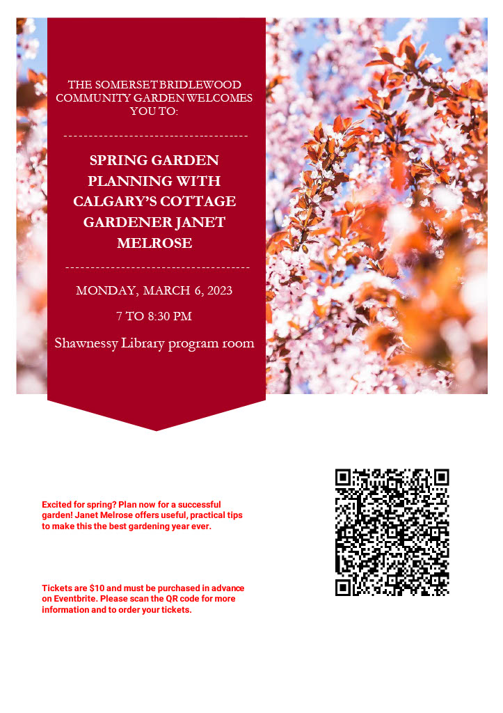 Plan now for spring planting! The Somerset Bridlewood Community Garden in Calgary, Alberta welcomes everyone to our upcoming fundraising event! Here is the Eventbrite link to purchase tickets.