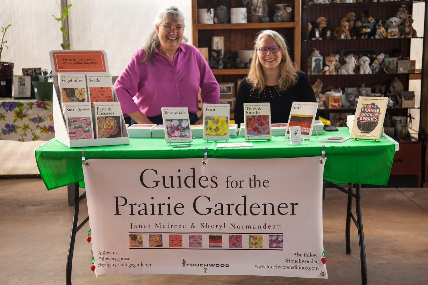 Saturday April 22…Janet and I celebrated the launch of The Prairie Gardener’s Go-To for Perennials and The Prairie Gardener’s Go-To for Fruit with a book signing at greengate Garden Centres here in Calgary. The gardening season is just barely getting underway in our neck of the woods, but we were able to have some delightful focussed discussion with gardeners of varying experience and we covered a wide range of topics from dealing with squirrels to building better soil and removing turfgrass to create new flowerbeds. A huge thank you to our hosts – we had a lot of fun! And…take a look at our gorgeous new banner – tons of love to TouchWood Editions for that! (Photo courtesy greengate Garden Centres.)