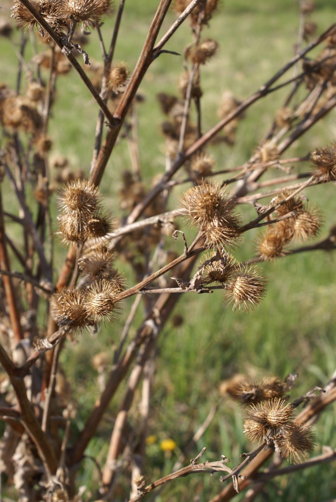 August 27 – I absolutely love hearing from readers and deeply appreciate all the gardening questions – so, please, keep them coming! Yesterday I received a message from a hobby farmer and gardener concerned about the difference between dock and burdock. When we use common names, it’s easy to make mistakes with ID, and it doesn’t help that those common names may be different depending on where you live! Dock is an older common name (still very much in use) for Rumex spp., what we also commonly call sorrel. There are no Rumex spp. on the Alberta Invasive Species list, and there sure is a lovely one growing in my herb garden so I can enjoy its lemon-flavoured leaves early in the spring! Burdock, on the other hand, is considered a bad guy here in our province, sitting firmly on the noxious weed list, and – please take a look at Exhibit A, below – it certainly looks like it belongs there! Burdock isn’t a Rumex spp.; it’s an Arctium spp.. See what I mean about how fun this is?