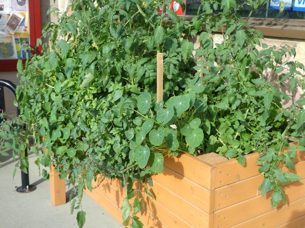 September 1 – Spent yesterday with dear friends in Bruderheim, watching Model Ts racing on a dirt track. It was an absolute blast! The company was delightful as always, the Fifties throwback band was stellar, and the weather was perfect! Coming back from the restaurant after the races, we spotted this lovely pizza garden planter, containing basil, oregano, nasturtiums, and – of course – tomatoes. This is a town that obviously doesn’t have deer that roam the streets and was hailstorm-free all summer. So wonderful!